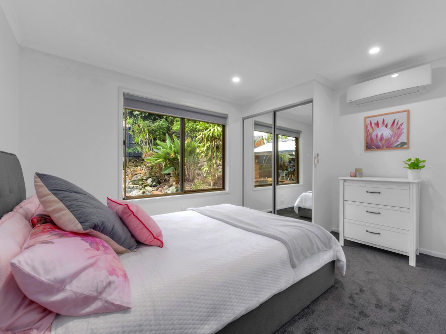 Featuring the luxury of reverse-cycle air-conditioning throughout, the home has also been beautifully appointed with slate and timber flooring as well as plush near-new carpet in all bedrooms. A large central bathroom with spa; insect screening; rainwater tank; double carport and additional driveway space for a trailer or jet-ski also feature.
