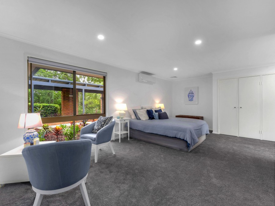 Set across sprawling 728M2 grounds, the stylish brick home's flowing single-level design captures glorious natural light and lush leafy outlooks from every window.